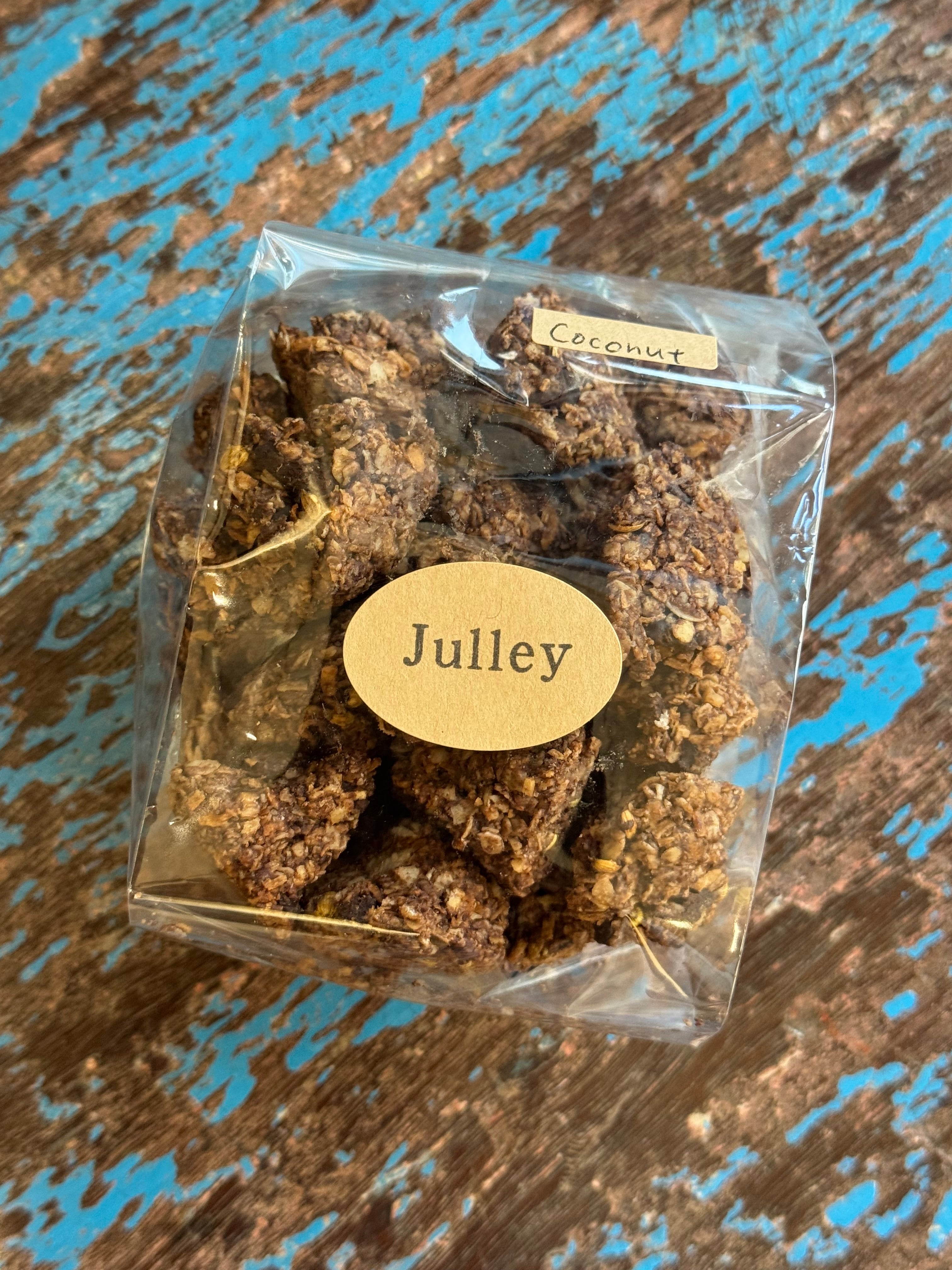 オートミール 米粉 きび砂糖 サラダ油 ココアパウダー ココナッツファイン チョコレート コリアンダーシード 水 ゲランド塩